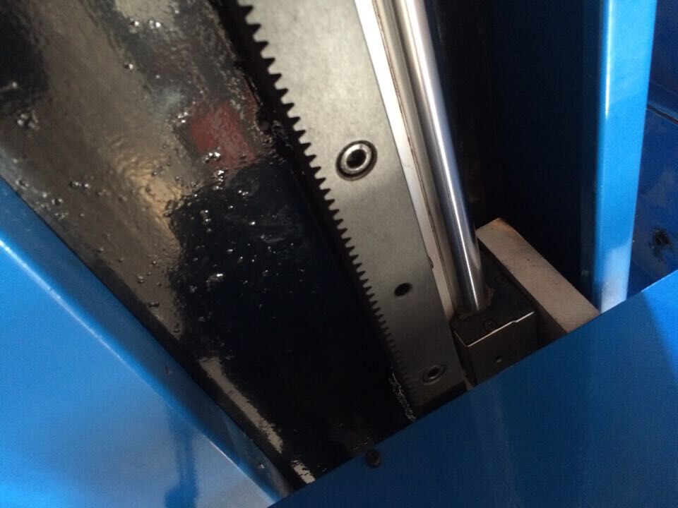 機(jī)器縱向采用高精度齒條與日本進(jìn)口松下伺服電機(jī)結(jié)合使用,所使用的齒輪、齒條全部經(jīng)過全自動新型淬火設(shè)備加以淬火處理,精密的加工工藝,使其精度達(dá)到了GB/T100967-9級標(biāo)準(zhǔn)。同時用臺灣雙滾軸直線導(dǎo)軌保證縱向行走更加精準(zhǔn)。