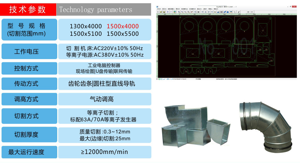 特別針對通風(fēng)管道行業(yè)專門用于切割2mm以下的薄、中碳鋼板、 不銹鋼板、鋁板、銅板、鍍鋅板、白鐵皮、合金板等多種板材材料,快速風(fēng)管等離子切割機(jī),效果佳、無掛渣和毛刺;在使用時直接連接普通配置的臺式電腦,運(yùn)用文泰軟件或AutoCAD繪圖軟件直接用于繪制圖形,不需轉(zhuǎn)換,直接切割,并可進(jìn)行簡單的排料,工件共邊設(shè)置,購買本公司此款設(shè)備可享受免費(fèi)送貨上門、安裝調(diào)試及培訓(xùn)、包教包會!